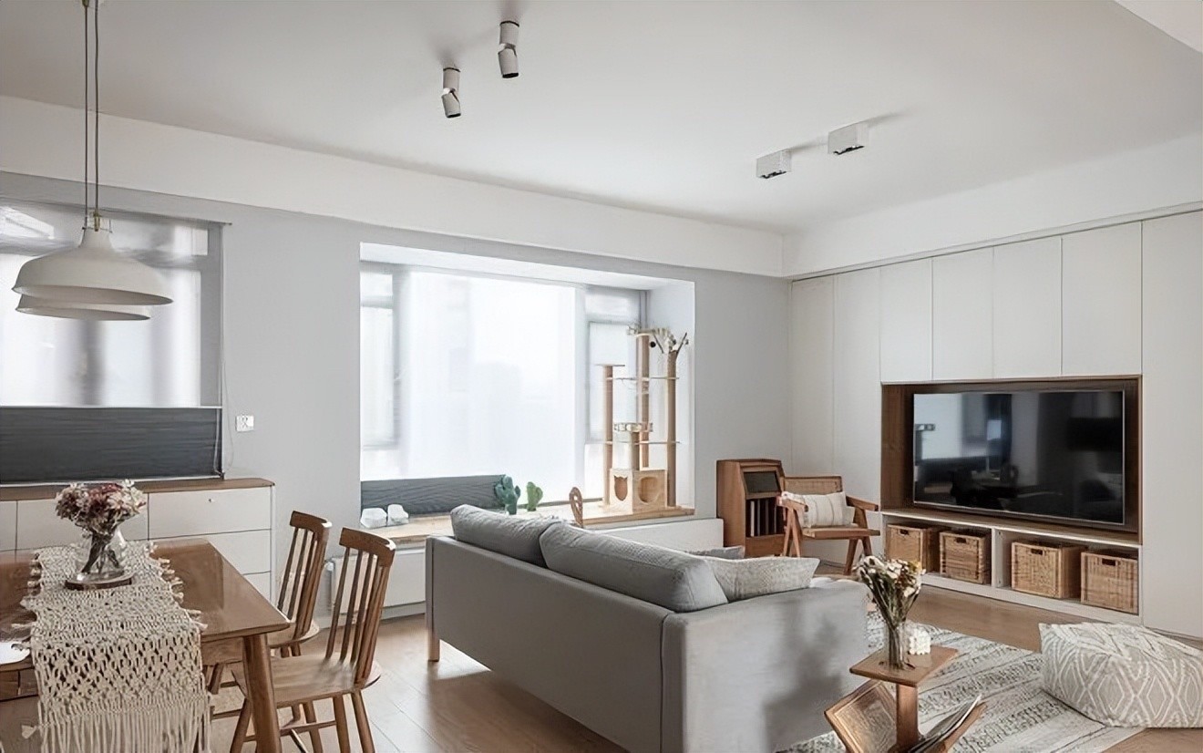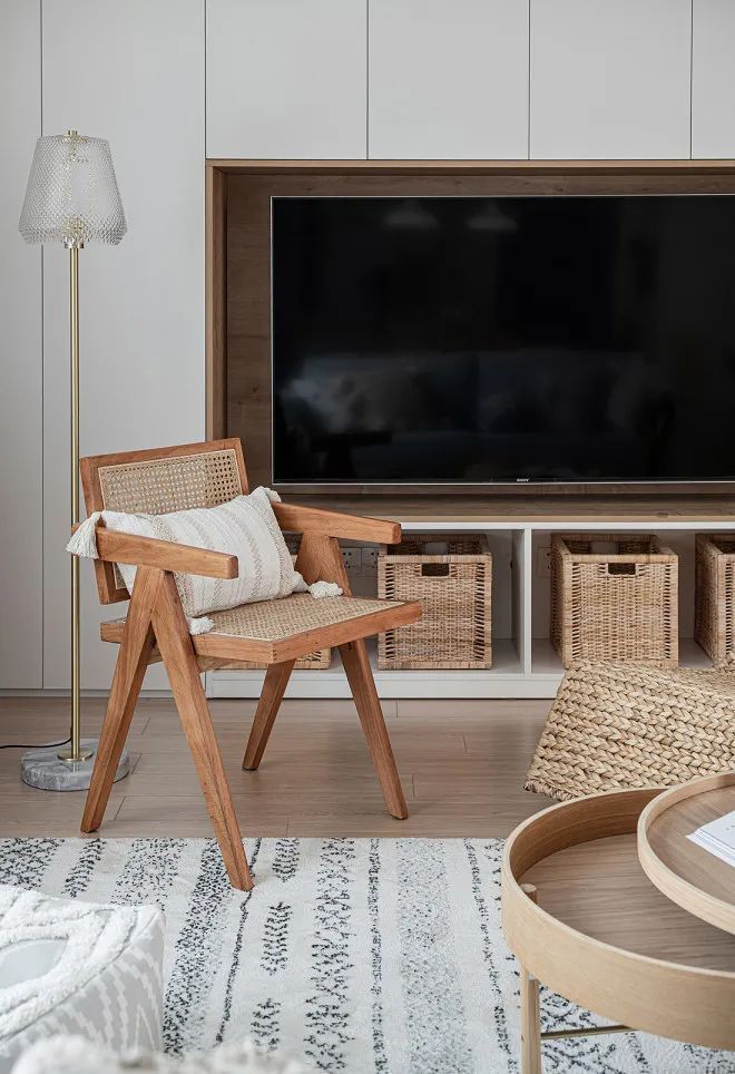 质朴的木元素和纯粹的白色渲染出客厅的淡雅和温馨。